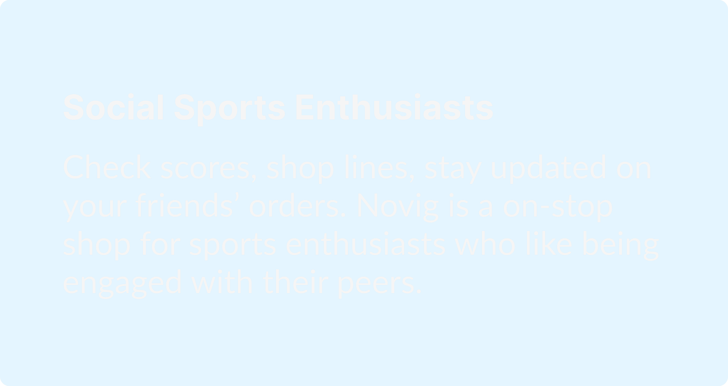 When I joined Novig, the concept of a peer-to-peer sports prediction market app was just an idea. I took on the challenge of transforming it into a launched mobile app. We had just five months from initial design to launch. Through multiple app iterations, we successfully met our volume and retention KPIs.